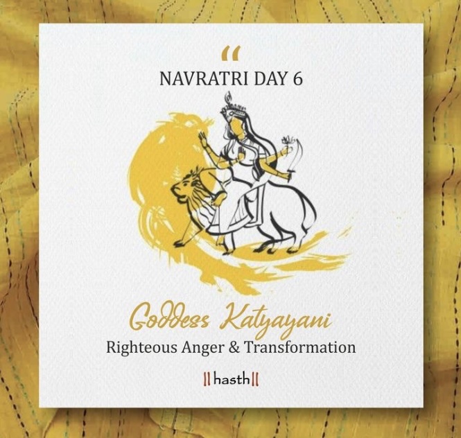 assumed to annihilate the demonic forces in the universe. As per our scriptures, anger that supports dharma (righteousness) is acceptable. Devi Katyayani represents that divine principle and form of the Mother Divine who is behind natural calamities and disasters. She is the anger that arises in creation to restore balance. She is invoked to put an end to all our inner foes that are an obstacle on the path of spiritual evolution.